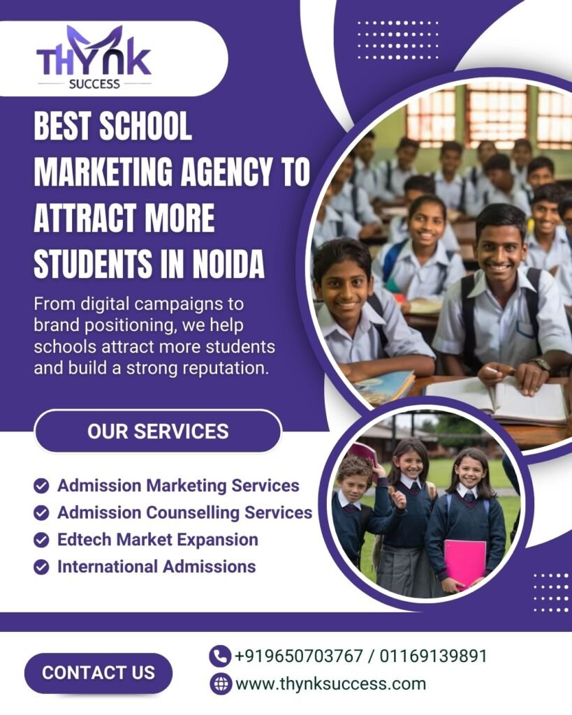 In a competitive city like Noida, schools need more than just quality education to attract students—they need strategic visibility and engagement. Thynk Success, as a leading Education Marketing Agency and trusted School Marketing Agency, provides comprehensive Admission Marketing Services and Digital Marketing for Schools to ensure consistent growth.